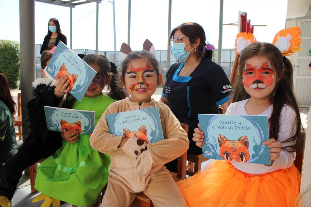 Así nace el proyecto Educando Emociones Ñuble que consta de un set de cuentos con una perspectiva regional, focalizado en el desarrollo de habilidades para el reconocimiento y expresión de emociones, contribuyendo al desarrollo integral y pleno de niñas y niños de hasta 5 años de edad. El lanzamiento del programa se hizo en la Sala Cuna y Jardín Infantil “Buen Pastor” de Chillán y contó con la participación de toda la comunidad educativa. A su vez, el curso medio superior del establecimiento interpretó el cuento Zorrito y el Volcán Chillán.