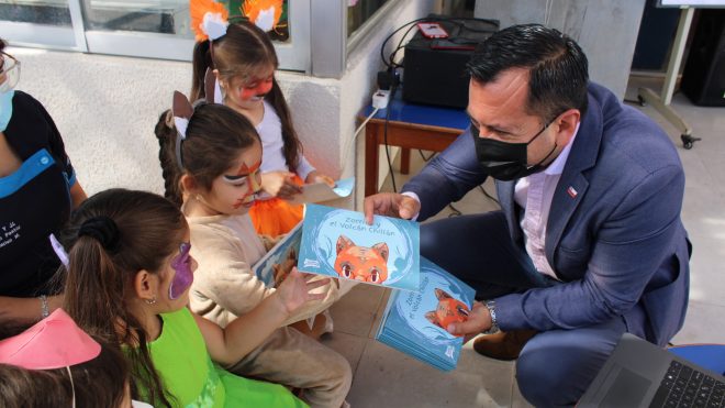 Así nace el proyecto Educando Emociones Ñuble que consta de un set de cuentos con una perspectiva regional, focalizado en el desarrollo de habilidades para el reconocimiento y expresión de emociones, contribuyendo al desarrollo integral y pleno de niñas y niños de hasta 5 años de edad. El lanzamiento del programa se hizo en la Sala Cuna y Jardín Infantil “Buen Pastor” de Chillán y contó con la participación de toda la comunidad educativa. A su vez, el curso medio superior del establecimiento interpretó el cuento Zorrito y el Volcán Chillán.