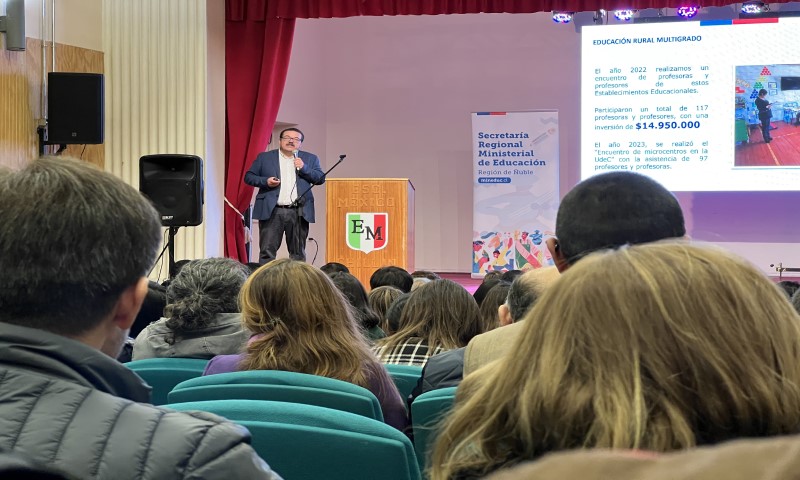 El Seremi de Educación, profesor César Riquelme Alarcón, realizó la cuenta pública de Educación en el auditorio Lázaro Cárdenas, entregando el balance de la gestión en 2022.