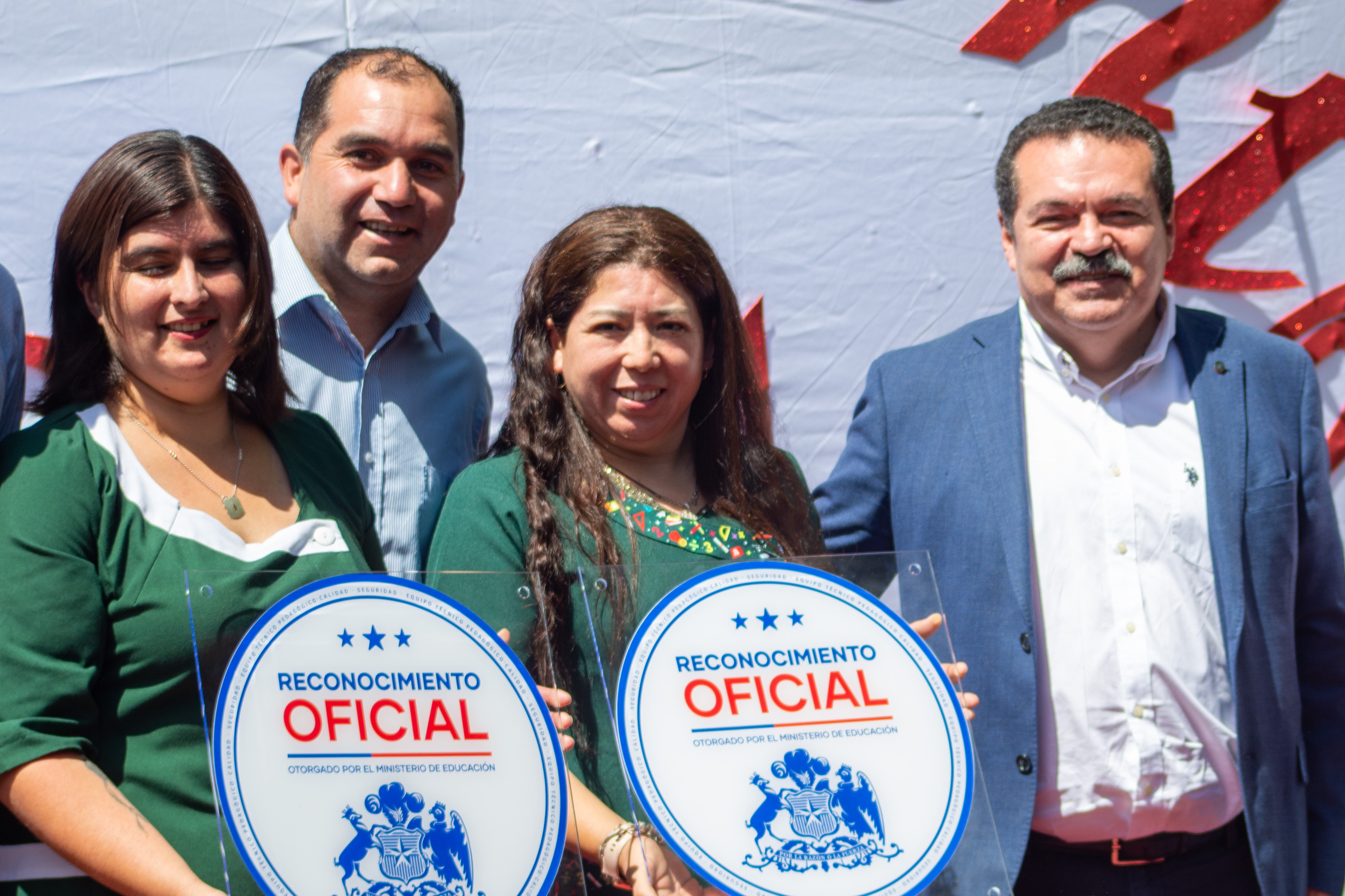 En la mañana de este martes, y junto a la Comunidad Educativa del Jardín Infantil Tía Edith Jans, donde se educan 49 niñas y niños de la comuna de El Carmen, se realizó la ceremonia de entrega de la placa de Reconocimiento Oficial, que acredita que tanto este establecimiento, como la Sala Cuna Santa Elvira -administrados por el Departamento de Educación Municipal- cuentan con este sello que acredita el cumplimiento de estándares en aspectos técnico-pedagógicos, de infraestructura y jurídicos.
